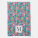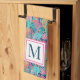 Preppy Pink Teal Navy Blue Pineapple Monogram Kitchen Towel