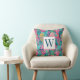 Preppy Pink Teal Navy Blue Pineapple Monogram Throw Pillow