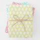 Pack of three patterned, pretty, preppy, and pastel wrapping paper sheets — perfect for baby showers, weddings, birthdays, or just because. Includes yellow, blue, and pink.