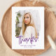 Preppy Purple Script Photo Graduation Thank You Postcard