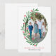 Preppy Red Oval Christmas Wreath Holiday Photo Card