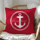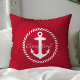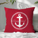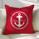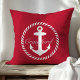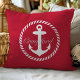 Preppy Red & White Nautical Anchor Monogram Throw Pillow