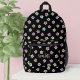Preppy Retro Groovy Floral Black Monogram Printed Backpack