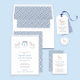 This design is shown as a "thank you" card but would also work well as personalized stationery with a name instead. This design features a central monogram crest with ribbon bow, with a rocking horse on each side. All watercolor elements originally hand painted by me in watercolors before being scanned into digital form. This is surrounded by a classic "Greek Key" border and matching pattern backer. You can change the contrast color of the Greek Key border on the front and back (shown here as a dark blue) to any color you like by entering the design tool (underneath the text customization area, click to "customize further") then changing the background color on the front.