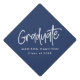 Customize your graduation cap by adding a personalized graduation cap topper. The graduation cap topper features "Graduate" in a white handwritten script with a navy background or color of your choice. Personalize the navy graduation cap topper by adding the graduate's name and graduation year.