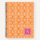 Preppy Square Lattice Monogram Orange Hot Pink Notebook
