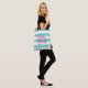 All-Over-Print Tote bag featuring the words "Team Bride" in pink trendy script against a turquoise and white stripes pattern background. Perfect for weddings for bridesmaids, maid of honor and flower girl. For other colors and matching items see here https://www.zazzle.com/collections/119250194970828530?rf=238364477188679314