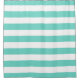Preppy shower curtain featuring a turquoise and white stripes pattern.
