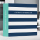 Preppy Turquoise and White Stripes with Blue Side 3 Ring Binder