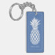 Preppy White Pineapple on Blue Keychain