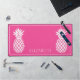 This preppy personalized desk mat features classic white pineapples on a background of bright girly pink. Personalize with your choice of name or special text. Fun for personalized party favors.