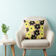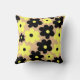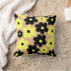 Preppy Yellow Black Hippie Flower Pattern Throw Pillow