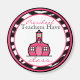 A magnet for teachers featuring the logo of The Pink Schoolhouse inside a circle shaped zebra print frame with pink trim. Black and pink text reads "Preschool Teachers have class."