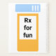 Prescription For Fun with this oversize medication bottle graphic in blue, orange, white and black. Edit or Remove text to your liking.