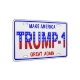 Display this patriotic Trump - 1 license plate inspired by those vintage Chevrolet USA 1 plates. Show your support for President Donald J. Trump and his America First policies on trade, taxes, energy, regulation, immigration, and healthcare and "Make America Great Again".