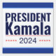 President Kamala. If you're having problems saying Kamala Harris's first name, it's pronounced "Comma-la", you can also call her "President." Design description: The design area has a white background and a medium blue border around the edges and light blue lines at inside edge of the top and bottom borders. All letter text is in a sans serif font in a dark blue border. The first line of text reads, "President' in all caps in a bolded sans serif font. The second line of text reads, "Kamala" without all caps in the same bolded sans serif font. Below that is a thin red line. At the bottom of the design is "2024" in template text, with five red stars on each side. Customize with your preferred colors.