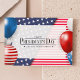 This vibrant postcard is a patriotic salute to President's Day, featuring a dynamic design of stars and stripes in the red, white, and blue of the American flag. The front of the postcard is adorned with the bold statement "HAPPY PRESIDENT'S DAY" centered at the top, with a subtitle "UNITED STATES OF AMERICA" just below, both set against a backdrop of star-spangled patterns and horizontal stripes. Flanking the celebratory message are two balloons, one in blue and one in red, giving the postcard a festive feel. This design captures the spirit of the holiday, making it a perfect choice for sending your President's Day greetings or for use as an invitation to a themed event.