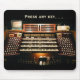 This pipe organ mousepad is an ideal gift for an organist showing a bewildering array of stops, pistons and knobs, and a large four-manual organ console. Underneath are the words Press Any Key
