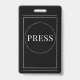 Template metallic gold and black Press Event Badge. Replace with your own event name and date. This version comes with a lanyard, but you may choose your style of attachment that includes, lanyard, metal clip or retractable, or no attachment.