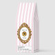 This box will make packaging up your coffee even more fun and is perfect for your next brunch, birthday party or bachelorette party. The design features a pink and white striped background with an ornate frame around a doorbell with text that reads "press for coffee." You can change the word coffee to anything your heart desires by clicking "personalize this template."