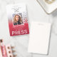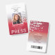 Modern, ombre red, light grey and white color combination : Vertical ID badge, with custom: photo, employee name, company name, logo, job title, ID, designation, bar-code and all other information. It's easy to personalize and customize all graphic elements and text.