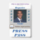 Press Pass Vertical Plastic Badge, not that you need an introduction, but if you did, these badges are it. Perfect for special events, meetings, and presentations. Customize this Press Pass with your images, and text. Press Pass measures 2.13 inches x 3.38 inches, is made of PVC Plastic, is durable, and won't fade or tear.