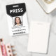 Easily upload your own photo and Bar Code. Custom press badge with photo ID and QR code. Customize the job title, your name and company name to your requirements. Reverse has 'If found return to". Press Pass Photo and Bar Code ID Badge. This template photo and Bar Code are for demonstration purposes only.