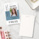 Press worker ID mass media employee photo dusty blue Badge. Personalized Press ID - an elegant badge with your newspaper or news channel logo, photo, name, job title, and more if required.