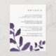 Designed to coordinate with our Pressed Botanical wedding collection in Violet, this chic plum and white guest information card features sprigs of vibrant purple watercolor foliage, framing your key wedding details, like hotel accommodations, welcome reception information, website and more. Add your custom text using the fields provided and use the Customize function to adjust fonts, sizes and spacing.