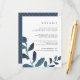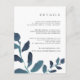 Designed to coordinate with our Pressed Botanical wedding collection in Ultramarine, this chic blue and white guest information card features sprigs of vibrant dark teal watercolor foliage, framing your key wedding details, like hotel accommodations, welcome reception information, website and more. Add your custom text using the fields provided and use the Customize function to adjust fonts, sizes and spacing.