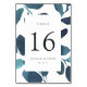 Chic botanical table number cards feature a border of dark teal blue watercolor foliage, framing your table number. Personalize with your names and wedding date, or name each table for an extra personal touch. Design repeats on reverse side. Coordinates with our Pressed Botanical wedding invitation suite in Ultramarine.