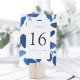Chic botanical table number cards feature a border of cobalt blue watercolor foliage, framing your table number. Personalize with your names and wedding date, or name each table for an extra personal touch. Design repeats on reverse side. Coordinates with our Pressed Botanical wedding invitation suite in Indigo.