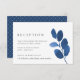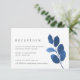 Designed to coordinate with our Pressed Botanical wedding collection, this chic cobalt blue and white reception enclosure card features a single spring of vibrant blue watercolor botanical foliage, alongside your reception details, including timing, venue and address.