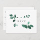Forest green and white watercolor botanical RSVP postcard with meal or entree selections. Designed to match our Pressed Botanical wedding collection in Emerald.