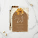 On the back, add a personal touch with a photo of you and your partner, creating a lasting memory for your guests. Whether you’re planning a cozy, rustic celebration or an elegant affair, this Save The Date sets the tone for a day filled with love and nature’s splendor.