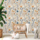 A beautiful boho botanical pressed flower pattern peel and stick wallpaper. Perfect for living spaces and DIY projects.