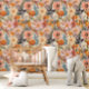 A beautiful boho botanical bold pressed flower pattern peel and stick wallpaper. Perfect for living spaces and DIY projects.
