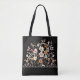 Pressed Wildflowers Cottagecore Monogram Black Tote Bag