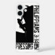 Inspirational Christian phone case featuring a black rock climber silhouette and scripture Philippians 3:14 with the words: "Pressing On" in black grunge font.