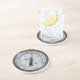 Photograph of a steam gauge centered on coaster.