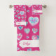 Pretty 3D Sparkly Crystal Gemstone Hearts on Pink Bath Towel Set