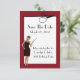 Pretty Art Deco style birthday party Save the Date announcement done in black, white, and red. A stylish red frame around a white text area, is decorated, at the top, with a elegant black swirl. Lovely digital 3D graphics of a 20's flapper girl decorates the bottom left of the invitation. All text is ready to personalize for your special event.