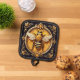 I ordered this product for my Mom as a gift and to check the product quality. It is a good thickness and great quality I am happy to report. She also advised that it will do a wonderful job in protecting her counters from hot pots and will last a really long time- durable. Printing is as expected and color is exactly her color of orange.
