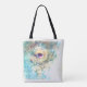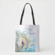 Pretty peacock tote for all your booty. Peacock feathers in distressed, pastel colors of turquoise, pink, purple, blue, gold and white. A more feminine take on peacock prints. Says on the front "pretty as a peacock" but can be personalized.