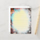 A pretty yellow and blue lined paper sheet with a faded fall leaves frame.
