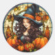 Pretty Autumn Witch Stained Glass Classic Round Sticker