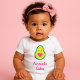 Great for a baby shower, this amazing baby girl one piece features a green avocado with a pink heart inside. Underneath the graphic is "Avocado Cutie" written in fun pink font. Order yours today!