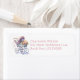 Cute baby shower return address labels done in white, with graphics of a pretty baby buggy with flowers and bows. Personalize the pink custom address to suit your needs.