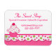 Whimsical bakery business card magnet done in pink, green, and white. Sweet graphics of a scalloped polka dot band and a fun pink cupcake decorate this adorable business magnet. Pink text is fully customizable to suit your business needs. What an adorable way to advertise your business.