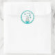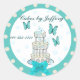 Elegant teal and tan design with a wedding cake and a pale teal bow, on a round sticker. Customize the text to meet your needs. Perfect for use in your business.